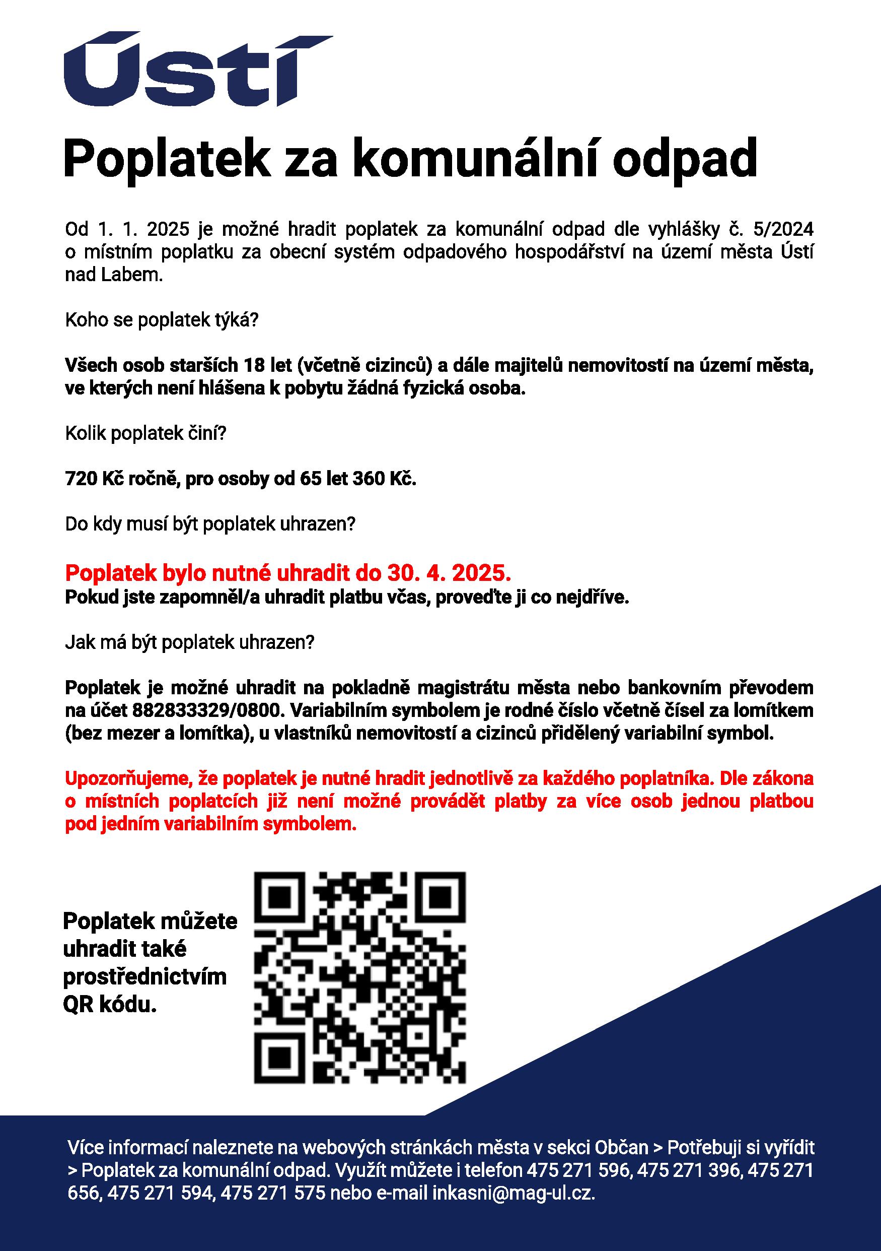 Poplatek bylo nutné uhradit do 30. 4. 2025.