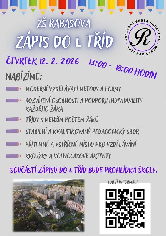 Home > Náš obvod > Aktuality > Zápis do 1. tříd ZŠ Rabasova Zápis do 1. tříd ZŠ Rabasova 14.1.2026 Zpět